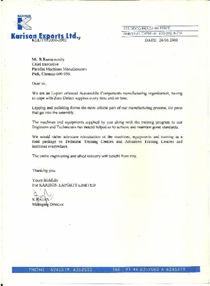- EXCELLENT INDUSTRIES, BANGALORE.
